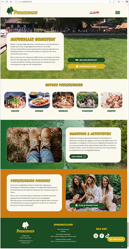 Professionele foto's versterken zowel de website als social media, waardoor Peerkesbosch een consistente uitstraling en maximale zichtbaarheid krijgt.